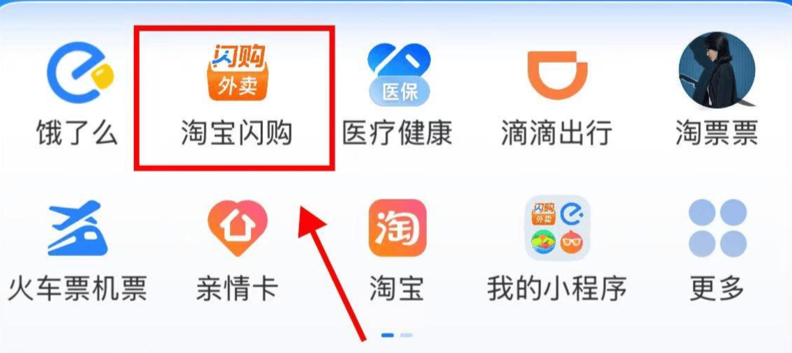 打開支付寶→在主菜單上面,即有“淘寶閃購”的圖標,如圖所示: