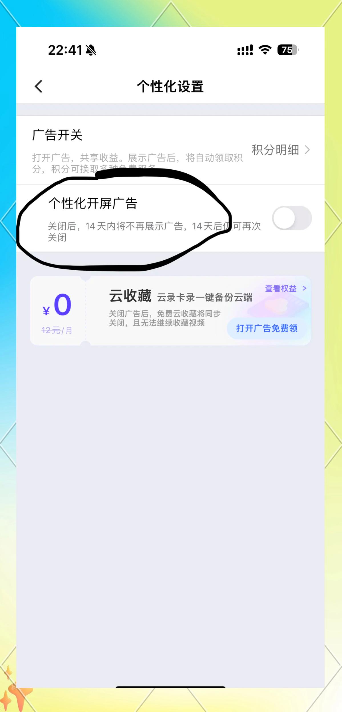 第三步:關(guān)閉廣告開關(guān)