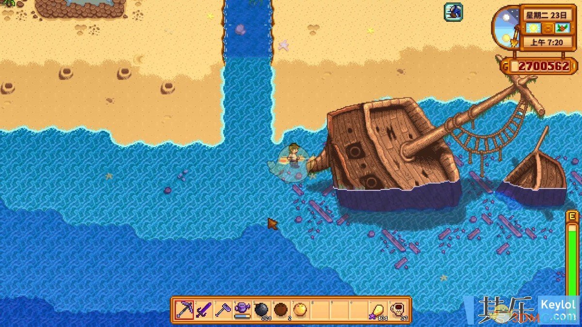 《星露谷物語》沉船處核桃樹金核桃位置介紹: