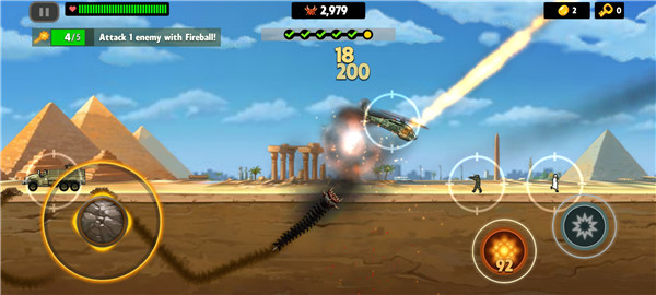 3、你需要不斷的襲擊上面的動物、人類以及各種車輛、飛機等人類社會的文明產物,或者獲取炸彈、興奮劑等獎勵加強戰斗力,并獲得擊殺經驗值并升級。