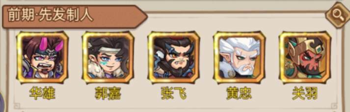 混搭陣容;輸出以關(guān)羽為核心,其他武將以眩暈為主,郭嘉禁療,華雄降防,配合關(guān)羽摧毀前排。
