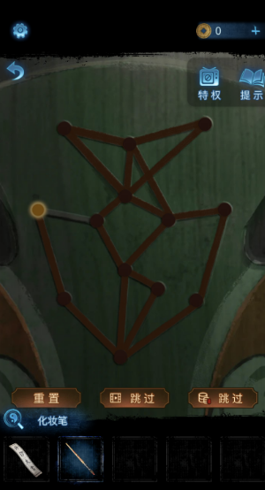 8、前往暗門后的桌上,使用化妝筆蘸取紅色顏料把門上的臉譜一筆畫完。