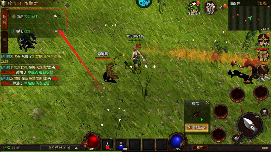 2、進(jìn)入戰(zhàn)斗地圖后,系統(tǒng)將自動(dòng)協(xié)助你進(jìn)行打怪,無需頻繁操作,只需等待擊殺數(shù)量達(dá)標(biāo),即可輕松完成任務(wù)目標(biāo)。