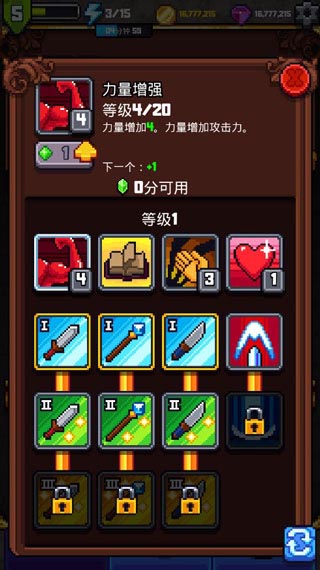 游戲中的總榜分為四種,武器、鎧甲、帽子和飾品,收集一定的金幣就可以在商店進行購買,當然了各種屬性的搭配,強力不一的定位都需要你來嘗試。