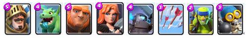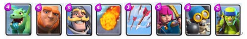 卡組特點:均衡型卡組,圣水消耗低,下兵節奏快,陣容轉換時間短;攻守能力均衡,但都不突出;對時機把握、操作水平要求較低;較懼怕對方王子偷家之類的戰術。