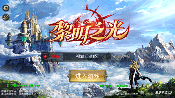 1、打開黎明之光手游,登錄賬號(hào)選擇區(qū)服后點(diǎn)擊進(jìn)入游戲;