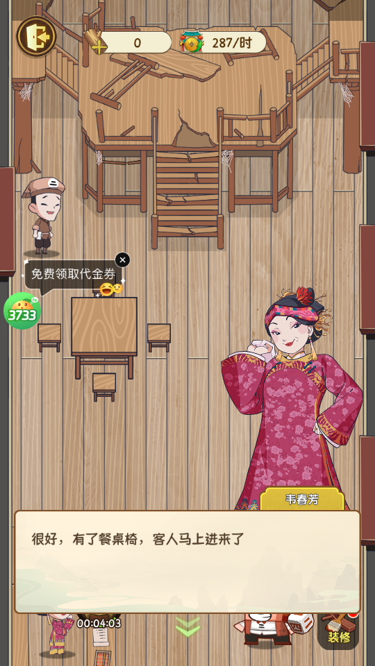 3、進(jìn)入游戲后,玩家可以前往酒樓區(qū)域,準(zhǔn)備展開經(jīng)營(yíng)之路;