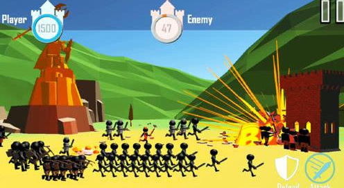 完全控制單位:如同RTS(即時戰(zhàn)略游戲),玩家可以控制每一個火柴人士兵前進、后退或攻擊特定目標,這是游戲的一大特色。