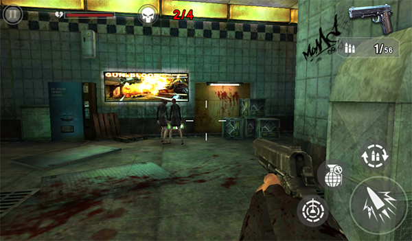 進入游戲可以看到操作界面很直觀,可以玩的關卡都直接出現在了游戲主界面,玩家可以在主界面為自己下一次的戰斗進行各種補給,也可以查看各個任務的過關條件和難度選擇下一個攻關的關卡。購買裝備和升級裝備自不必說,游戲中也可以進行彈藥補給哦。為了清掉城市里的喪尸保護幸存者,我們得一次又一次沖進各個街道進行近距離肉搏戰,帶上你最強大的武器戰斗吧。