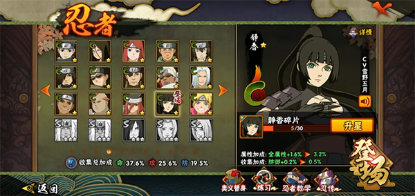 各位學員每次成功招募忍者,均可提升角色全屬性,而且不同的忍者還會有不同的收集加成,這能幫我們提升不少戰(zhàn)力呢!