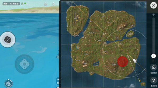 游戲進行一陣時間后,會有一輛飛機經過地圖,并在路線上隨機位置掉落空投,空投在地圖上有標記。新手不建議去撿。下面也不會提到。