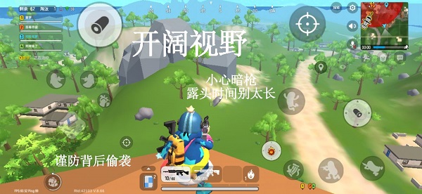 游戲進行一段時間以后,地圖隨機刷安全區,過幾分鐘會有一片藍色的毒替代安全區外的地方,在毒內會持續掉血,于是要求玩家在一定時間內跑到安全區內。