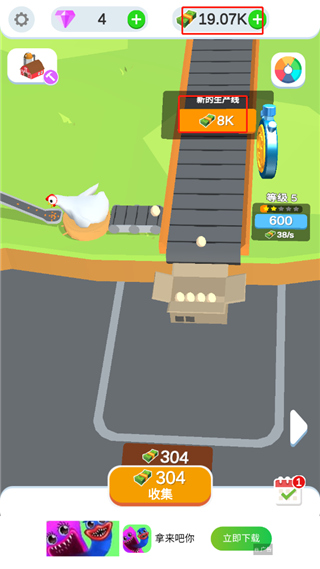 3、獲得一只母雞,這樣就相當(dāng)于獲得一條生產(chǎn)線,母雞產(chǎn)生的雞蛋將會直接成為玩家的收益;