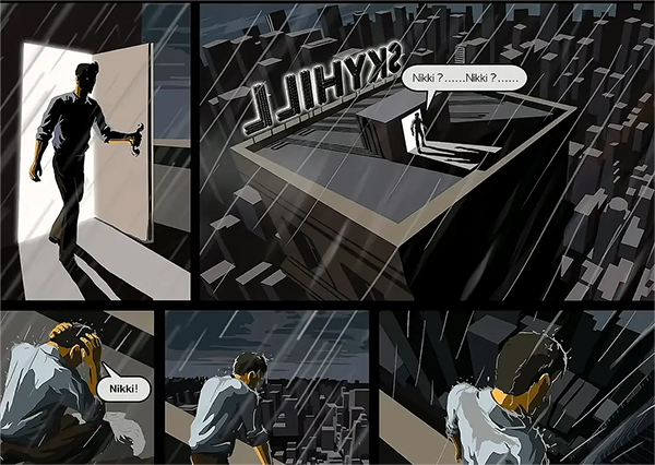 而相對(duì)應(yīng)的結(jié)局就是主角殺出重圍,打開了酒店的門,卻發(fā)現(xiàn)自己來到的“一樓”是樓頂……主角恍惚的呼喊著女兒的名字,自然無人應(yīng)答,而主角也在此時(shí)仿佛意識(shí)到了什么,企圖跳樓自殺