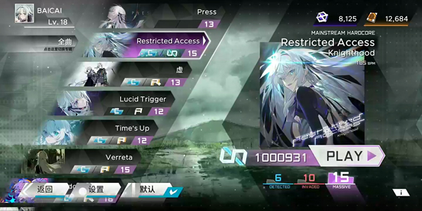 1、打開游戲,選擇曲目和難度開始游戲