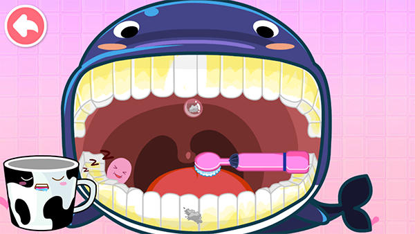 2、接下來,讓寶寶操控牙刷幫助鯨魚把它的牙齒刷干凈,把細菌和牙垢都刷掉;在游戲中,寶寶需要用手指滑動屏幕,控制牙刷在鯨魚的牙齒上來回刷動;通過這樣的操作,寶寶可以感受到刷牙的樂趣,并且了解到刷牙的重要性;