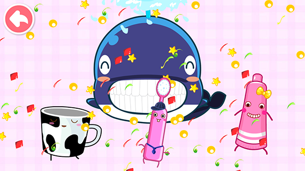 3、大功告成!當寶寶成功將鯨魚的牙齒刷干凈后,鯨魚會開心地笑出聲來,并且向寶寶展示它潔白的牙齒;這時,寶寶會感到自己的努力得到了回報,同時也會更加珍惜自己的牙齒健康;