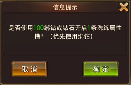玩家可以使用100綁鉆或鉆石開啟新的洗練屬性槽,開啟時將自動生成一條洗練屬性,每件裝備最多可以擁有4條屬性槽。只要花費100鉆即可擁有高額屬性,小編認為性價比是很高的哦!