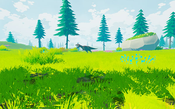 1、沉浸式史前世界以遠古生物為核心,采用Low Poly風格生存游戲設計。