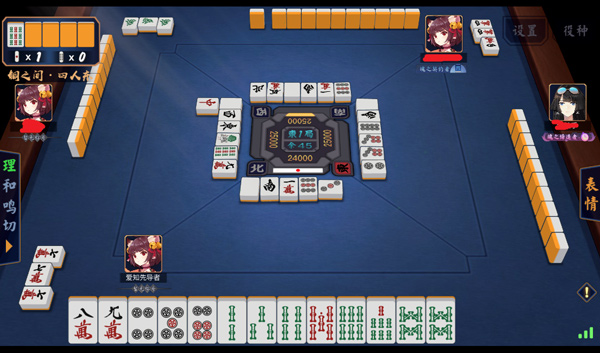 3、對戰畫面清晰直觀,牌面設計采用日本麻將傳統字體風格。點擊要打出的牌即可切牌,遇到可以“吃”“碰”“杠”的情況時,點擊對應提示完成操作。需要注意的是,遵循立直麻將的規則,必須有“役”才能胡牌,規則統一又充滿挑戰性。