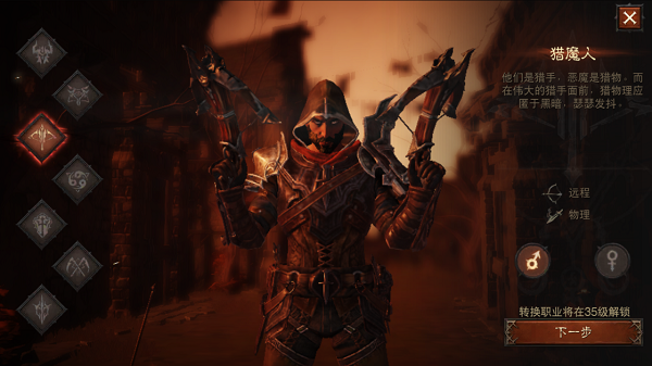 獵魔人是無情的俠義之士,會從遠(yuǎn)處發(fā)起進攻;他們是經(jīng)過訓(xùn)練的惡魔獵人,卻身負(fù)悲慘的過去——他們的家人被烈焰地獄的惡魔所害。獵魔人用錘煉的戒律積蓄能量,一往無前地發(fā)起進攻,直到他們的獵物任由自己擺布。