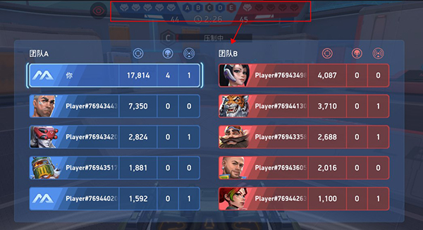 4、玩家點擊上方狀態欄即可查看己方和敵人玩家的戰績信息。