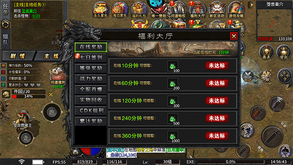 6、點擊屏幕右上角的福利大廳,這里可以在完成某些任務后領取福利道具;