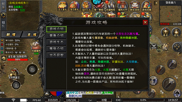 7、最后點擊屏幕右上角的游戲攻略可查看關于游戲的裝備、生態、等級以及貨幣獲取的眾多詳細介紹。
