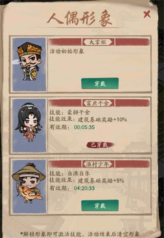 穿戴不同的人偶形象可以帶來不同的建筑基礎(chǔ)獎勵加成,而且人偶效果可疊加。希望能快速賺取更多金幣的掌柜不要忽略這個點哦~