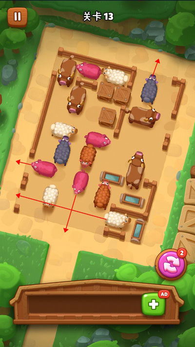 2、柵欄里的動物可以前進、后退,也能前后左右移動給其它動物讓路