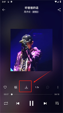 2、然后選擇想要下載的音樂,點擊進入播放頁面,點擊下載按鈕