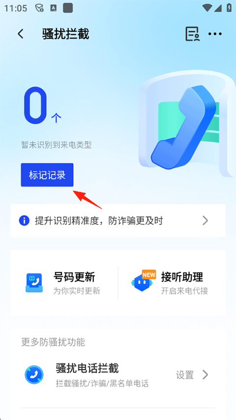 2、在騷擾攔截頁面點擊標記記錄按鈕;