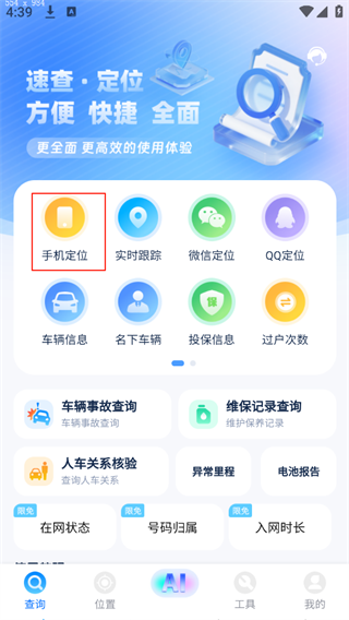 1、打開軟件點擊手機定位
