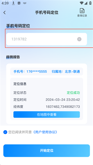 2、輸入手機號點擊開始定位