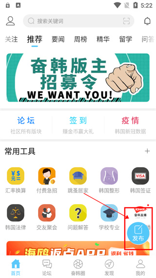 奮斗在韓國app怎么發帖?