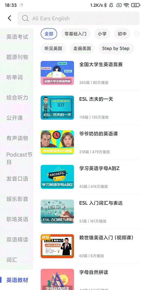 4、興趣學習:有聲讀物、名人演講、公開課、少兒英語、影視英語等豐富資源。