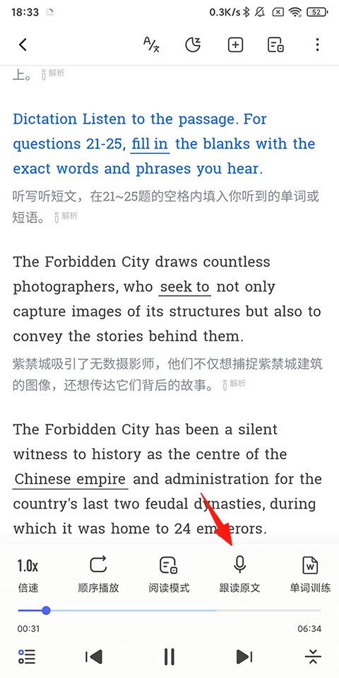 3、點擊【跟讀原文】;