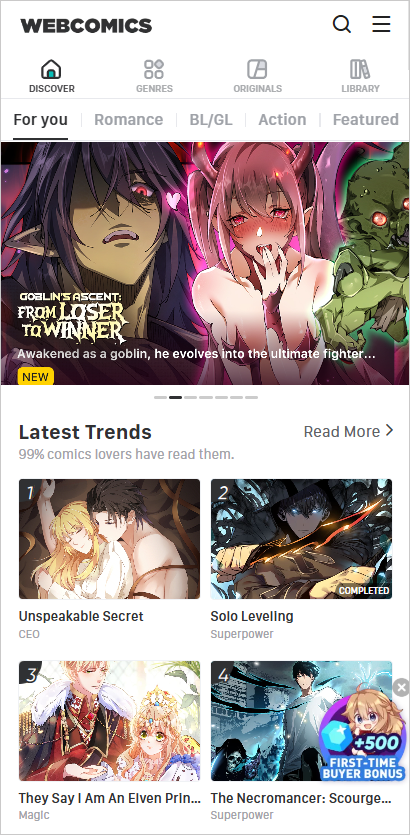 WebComics漫畫是一款很便利的漫畫閱讀軟件,這里的漫畫資源齊全,大家可以閱讀到各種類型的漫畫,校園、古風(fēng)、冒險(xiǎn)、愛情等等,分類的非常的清晰,用戶很容易找到自己喜歡的漫畫資源,還可以自己搜索,可以直接找到喜歡的漫畫。軟件還提供了許多的福利,用戶可以免費(fèi)閱讀到各種精彩的漫畫,還可以享受到各種優(yōu)惠折扣,舒適的閱讀漫畫哦。