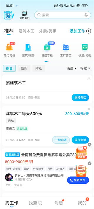 · 招工快:每日更新10萬+建筑、裝修、工廠崗位,定位附近活源,一鍵撥號秒聯系。
