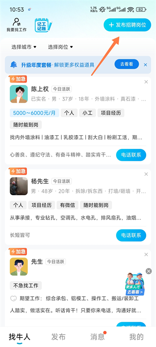 4、當然如果你選的是【我要招人】即可在主頁找牛人或者發布招聘崗位