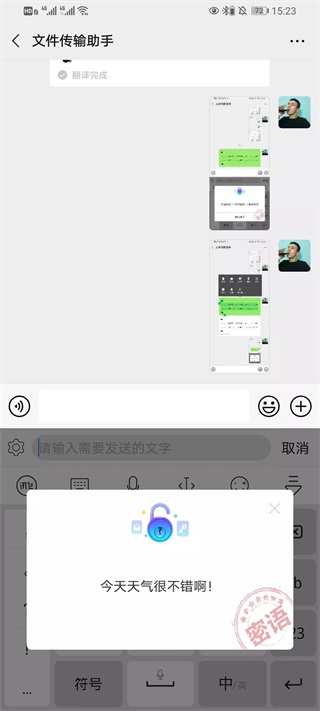3、復制好密語后,我們只需要再次點擊輸入框,打開輸入框訊飛輸入法即可自動幫助我們進行解密(密語模式必須打開)。