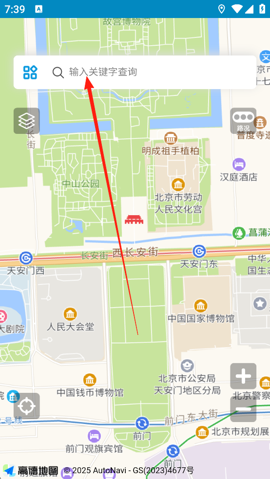 1、首先用戶可以開啟定位,定位自己當前的位置,然后搜索想去的目的地