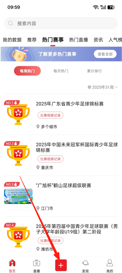 1、打開我是球星App,登錄之后,點擊加號