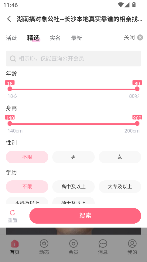3、根據(jù)個(gè)人偏好,設(shè)置你心儀對(duì)象的條件,如年齡、學(xué)歷、身高等;