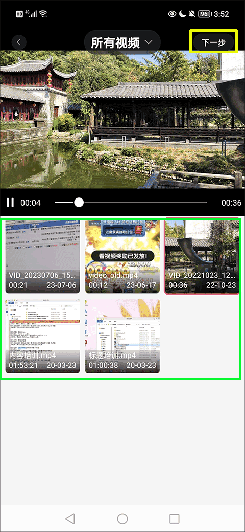2、若選擇“視頻去水印”,請從 相冊 中導入需要處理的視頻,隨后點擊右上角的“下一步”進入編輯界面;