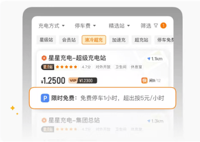 1、搜索/篩選/查看推薦,找到合適場站;注意場站停車收費情況。