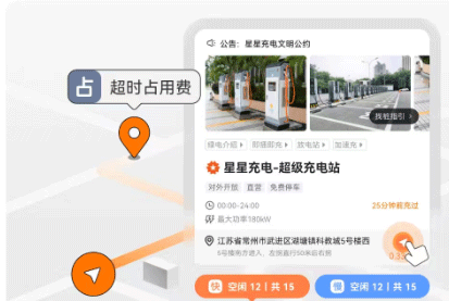 2、查看卡片或場站詳情,“導航”按鈕助您到達場站;注意部分場站超時占用費。